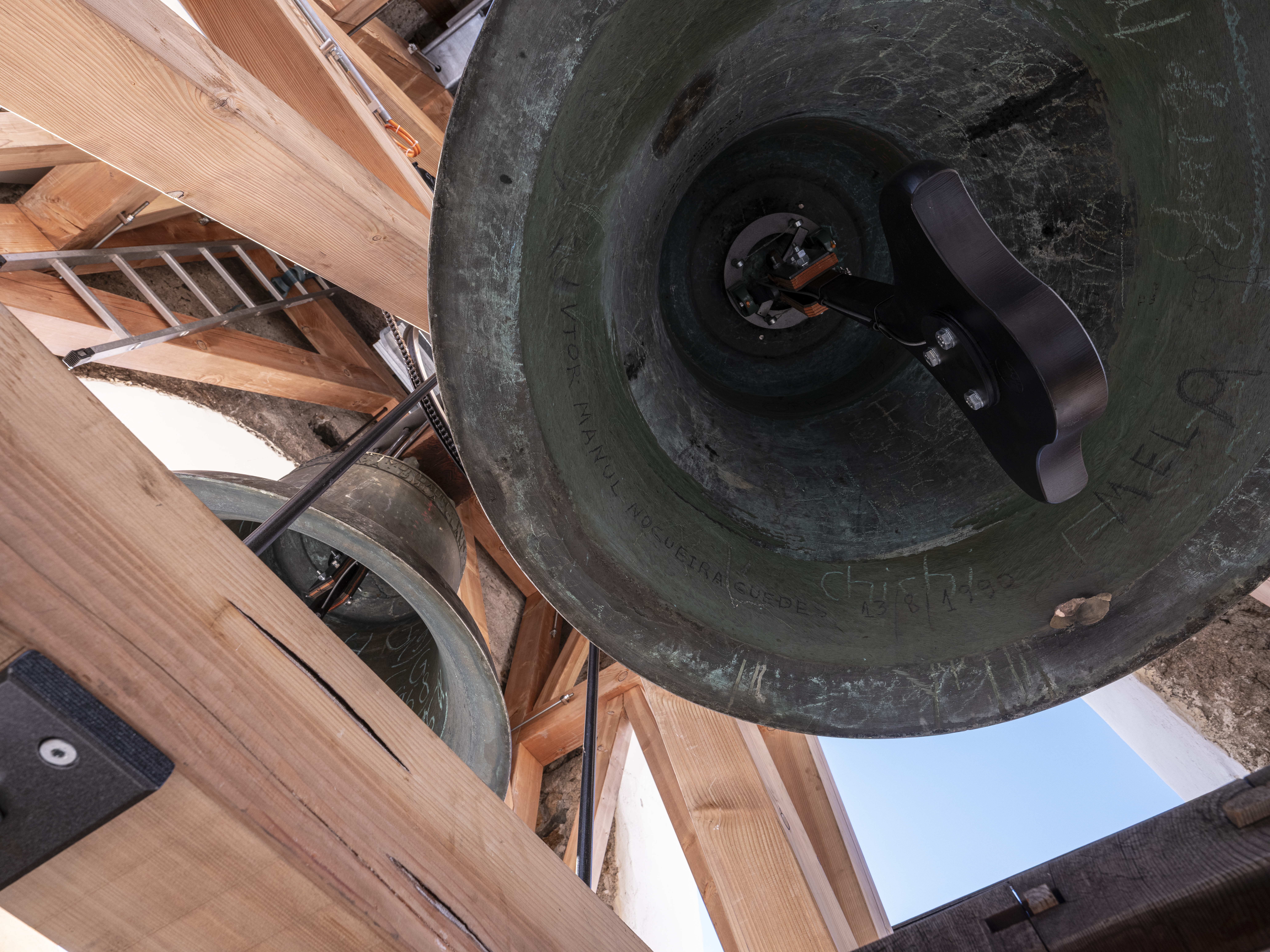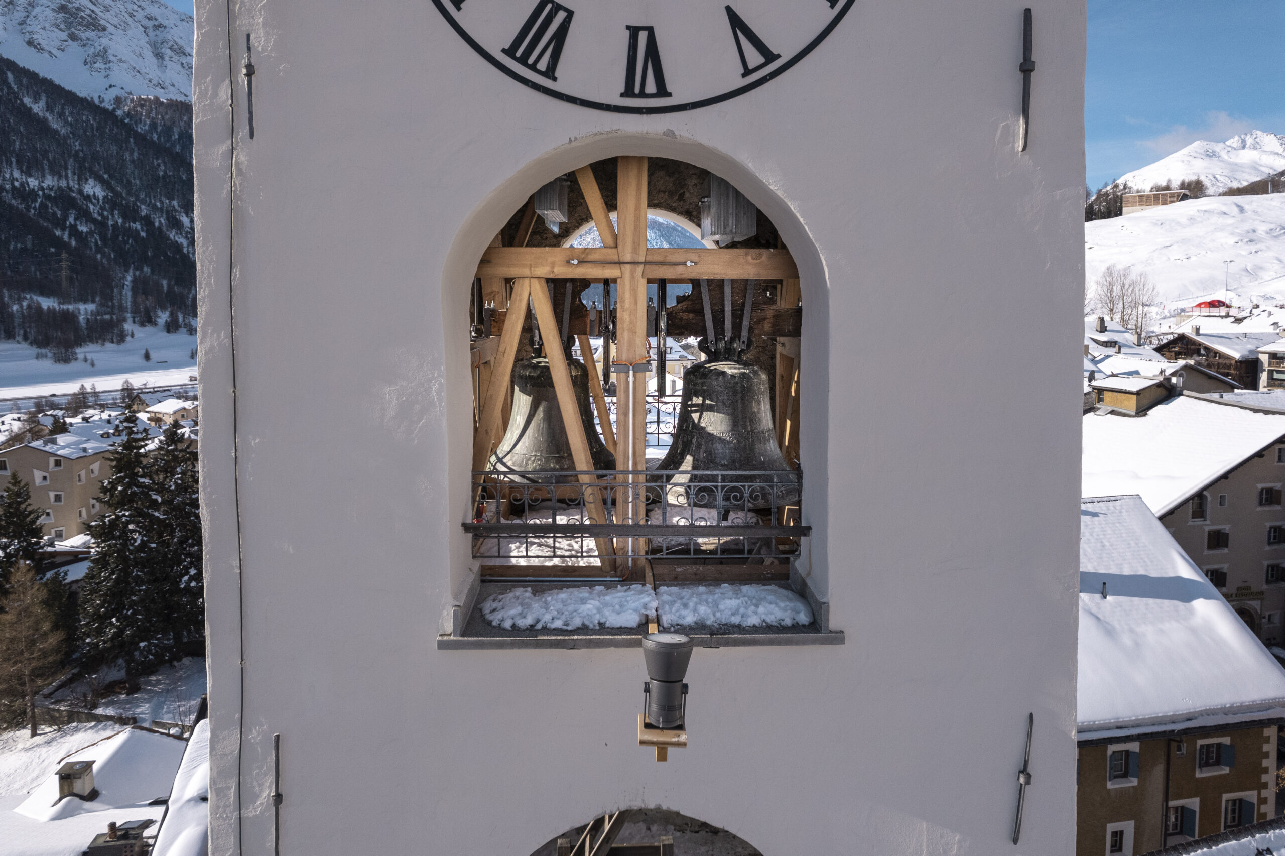 Anfangs 2025 beauftragte die Gemeinde Zuoz die Muff Kirchturmtechnik AG aus Triengen eine Lösung für die beschriebenen Problemstellungen zu entwickeln und umzusetzen. Die Zielsetzungen waren klar definiert: Einerseits sollte das ursprüngliche Kulturläuten wiederhergestellt werden, andererseits war eine Reduktion der Schwinggeschwindigkeiten auf ein für die Tragstruktur des Turms verträgliches Mass anzustreben.